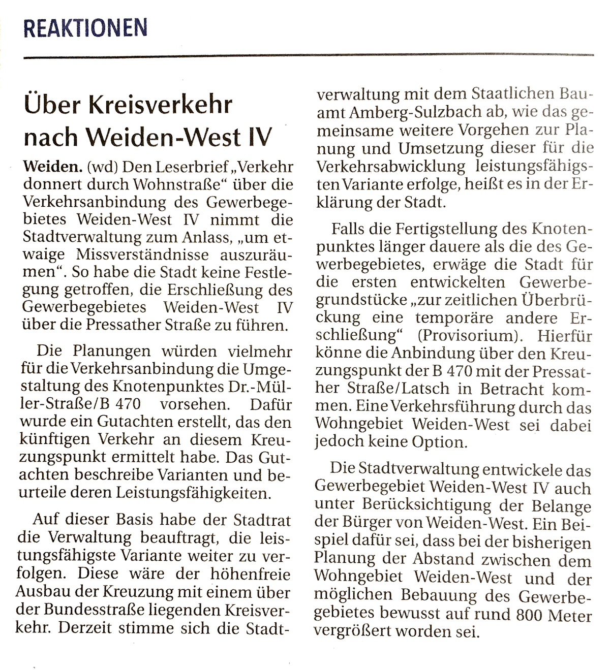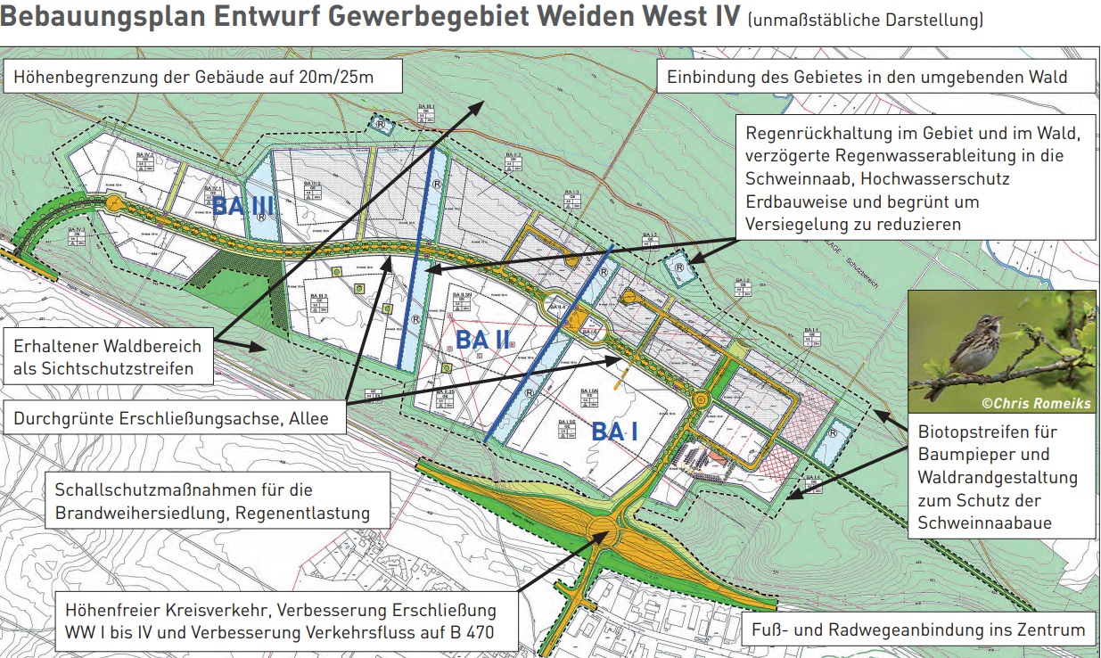 Zur Entwicklung und zur Planung des neuen Gewerbegebietes Weiden West IV hat die Stadt Weiden sich am 25.05.2018 mit einer Pressemitteilung [35 KB] erklärt.